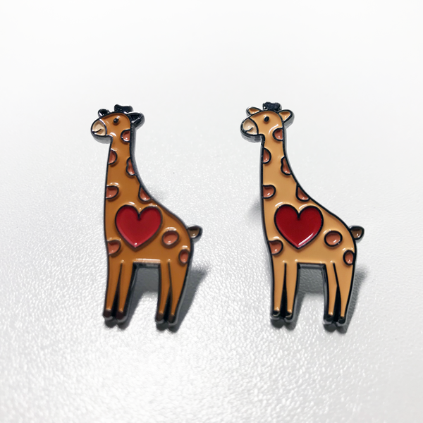 기린 뱃지(주황/왼쪽) 과 기린 뱃지(노랑/오른쪽) 비교 사진입니다.